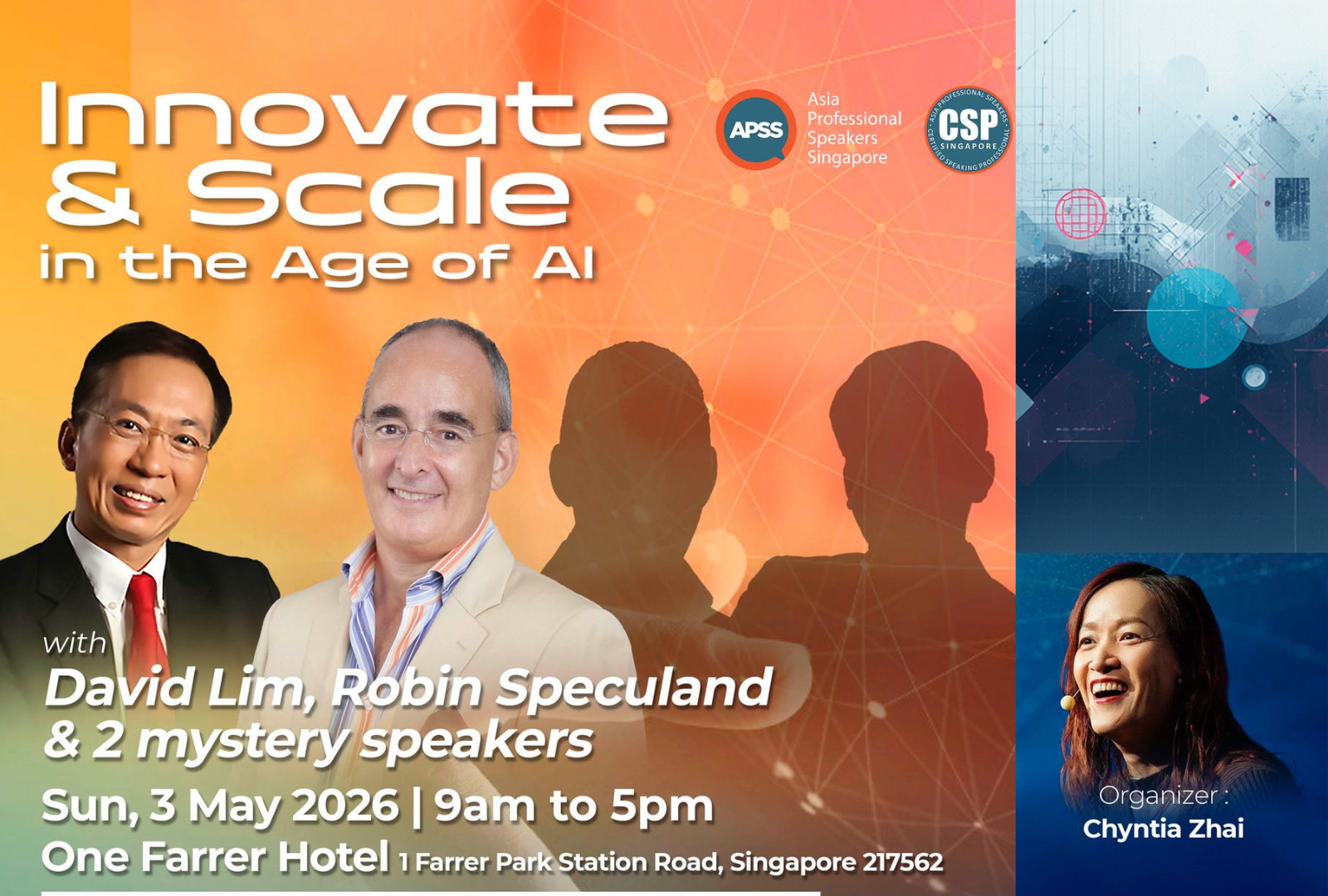 CSP Summit 2026 Registration link https://my.asiaspeakers.org/event-6586194 + Add to Google Calendar + iCal / Outlook export 00 days 00 hours 00 minutes 00 seconds Date May 03 2026 Time 9:00 am - 5:00 pm More Info Read More Location One Farrer Hotel 1 Farrer Park Station Rd, Singapore 217562 Read More Share this event